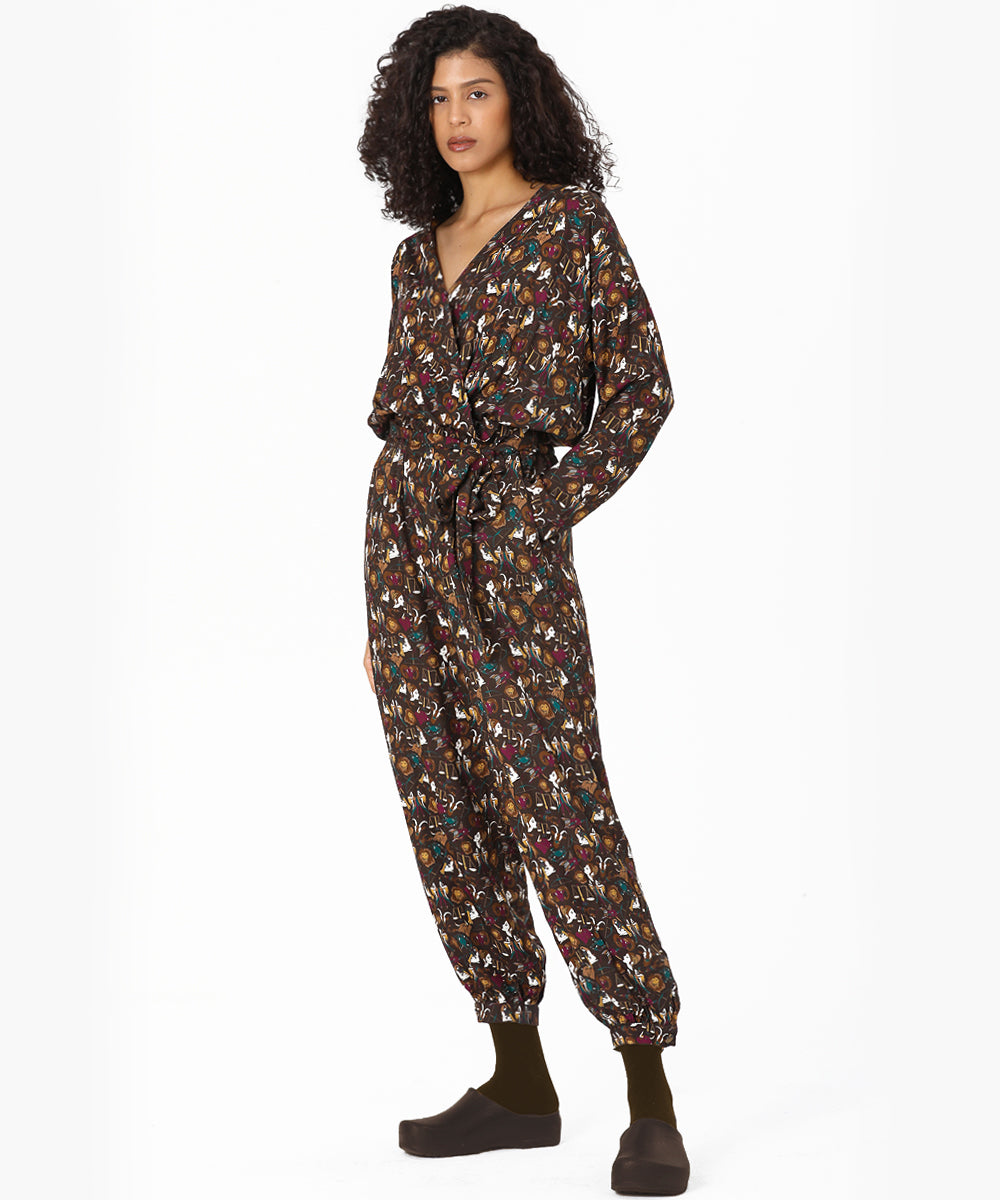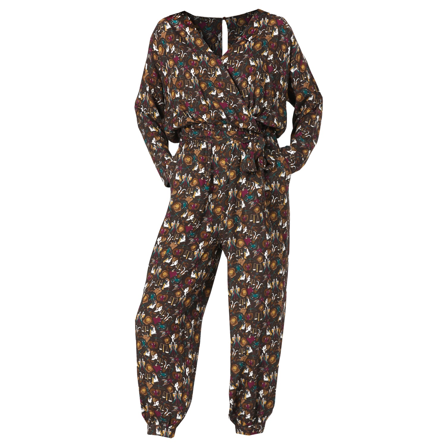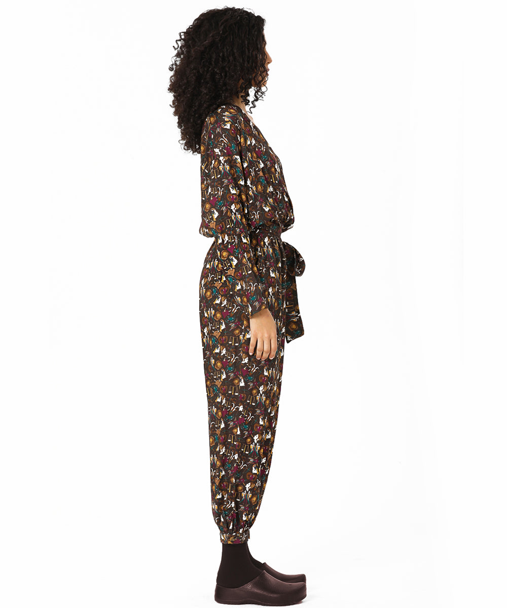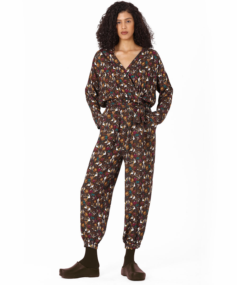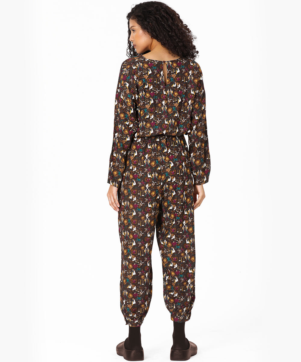 Belden Kuşaklı Burçlar Desenli Dokuma Tulum